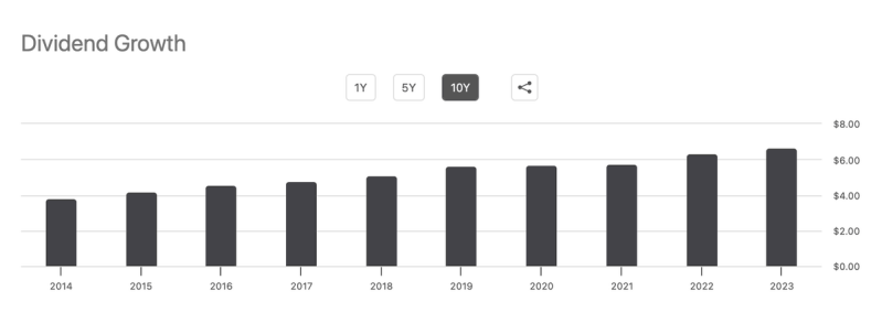 Au cours des dix dernières années, les dividendes versés par le S&P 500 ont augmenté chaque année.
