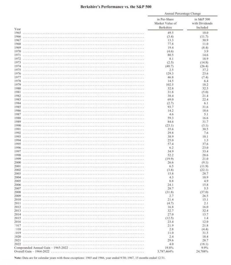 Bien qu'elle ait sous-performé le marché à 19 reprises entre 1965 et 2022, la société Berkshire a enregistré un rendement de 3 787 464 %, contre 24 708 % pour le S&P 500.