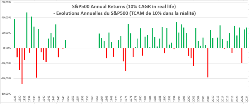 Il suffit de regarder la volatilité du marché à travers les rendements annuels du S&P 500 :